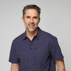 Bronson Casual Men’s Dot Printed Short Sleeve Shirt Navy & White