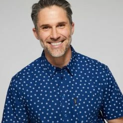 Bronson Casual Men’s Ship Wheel Printed Short Sleeve Shirt Navy & White