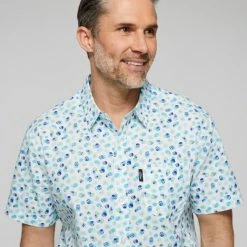 Bronson Casual Men’s Printed Short Sleeve Shirt White & Aqua White & Aqua