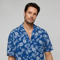 JB Jayson Brunsdon Men’s Paisley Rever Collar Short Sleeve Shirt Navy