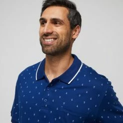 The Bronson Casual Men’s Balmain Cotton Jersey Short Sleeve Polo is a snazzy classic fit polo featuring simple anchor prints all over, a patch chest pocket, ribbed collar and cuffs. The black outlined edges on the sleeve and collar helps to provide an accent that accentuates the shape and matching this shirt with some dark-coloured pants creates a contrastingly cool look.