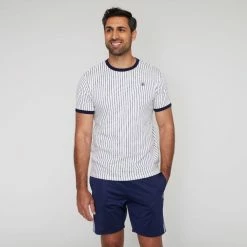 The FILA Wyatt Ringer Heritage Jersey Tee comes designed in a stylish pinstripe design, featuring the brand’s iconic F-Box logo embroidered on the chest. The ribbed neck and cuffs, regular fit and knitted fabric allow extra comfort. Wear it with FILA shorts or track pants for a complete sporty look this season.