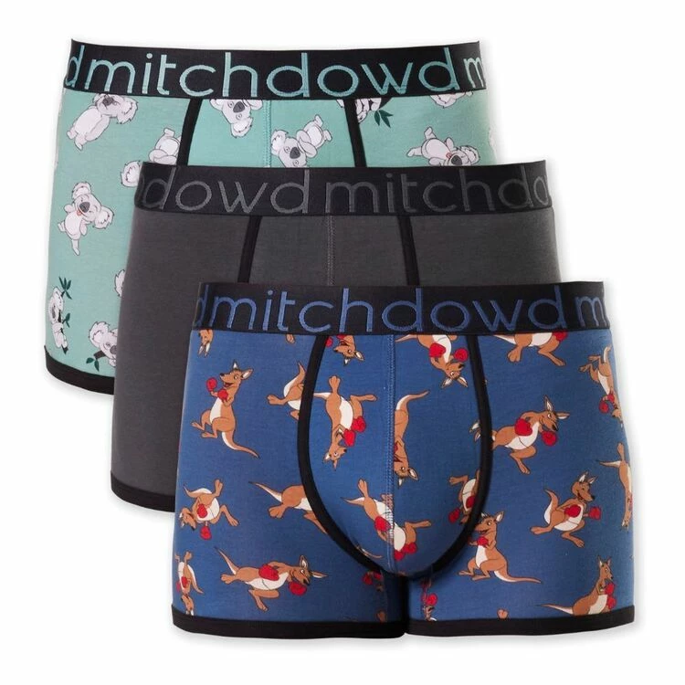 The Mitch Dowd Moody Koala 3 Pack Trunk provides all-day comfort with its unique long leg cut that is designed to stay in place and reduce chaffing. These comfort trunks feature no side or inner seams throughout the inner leg for a smooth finish with nothing to dig into your skin. The comfortably fitted pouch is also designed to keep you cool and comfortable.