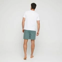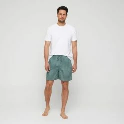 Sleep in comfort and style with the Nic Morris Men’s Woven Sleep Short, designed exclusively for Harris Scarfe. Constructed from breathable cotton fibres, these sleep shorts are the perfect companion during the warmer summer months. Featuring a timeless stripe print and a soothing green tone, this practical and stylish design fastens with a functional waist tie.
