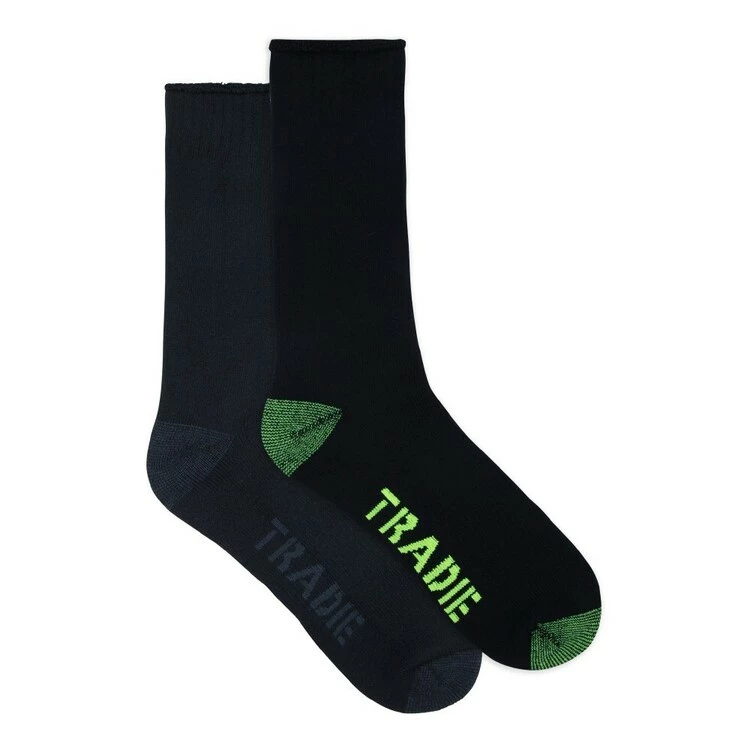 With a dual layer construction and reinforced heel and toe, this Tradie Black Cotton Work Socks 2 Pack has been designed to take a beating so your feet don’t have to! An extra thick sole and arch support provides for a better, comfier fit, and the durable construction means these socks will last longer without falling apart.