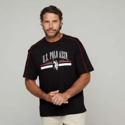 Add a touch of style to your wardrobe with the U.S. Polo Assn. Brand and Stripe Short Sleeve T-Shirt. It features a 100% cotton construction for ultimate comfort and breathability, a printed logo for a classic touch and piping on the sleeves for an added hint of detail that takes the look to the next level. Whether youโre going out for drinks or just kicking back and relaxing at home, this t-shirt has you covered!