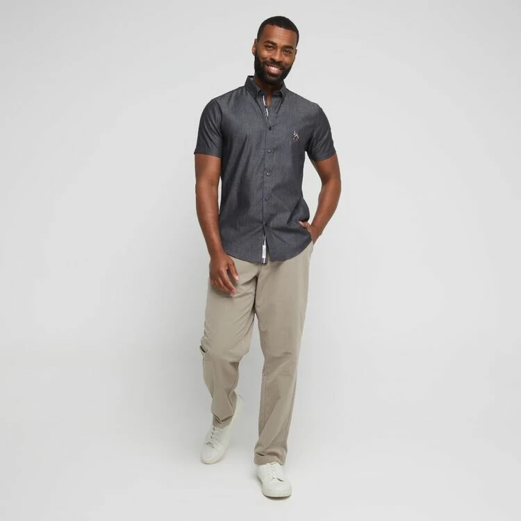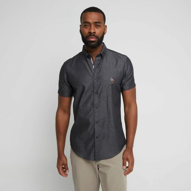 Look every bit the stylish modern man with the U.S. Polo Assn. Short Sleeve Chambray Shirt with Logo. Available in 2 colours to match almost any outfit.