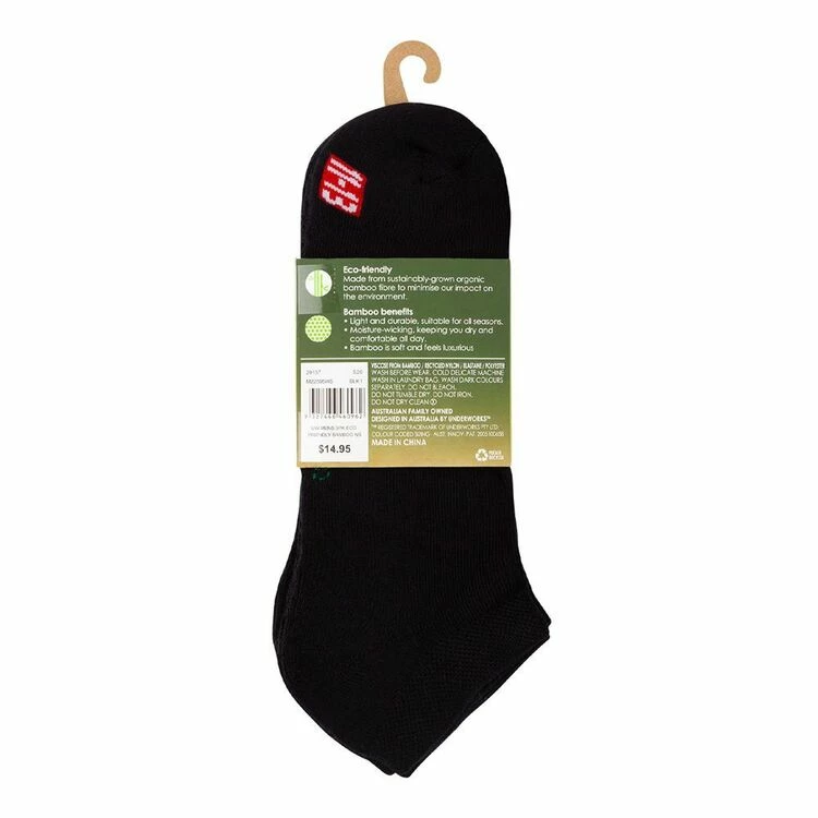 This Underworks Eco Friendly Bamboo Sport No Show Socks 3 Pack is an environmentally friendly pick that, with sustainably sourced bamboo fibres and a cushioned sole, is easy on both your feet and the planet! The bamboo fibre viscose is moisture wicking and breathable, providing a fresher, cooler feel for longer periods of time. Comfortable, breathable and sustainable, these socks are the perfect pick for everyday wear!
